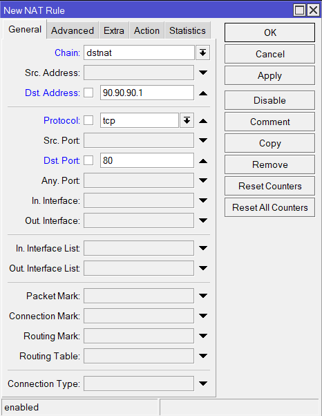 - Przejdź do zakładki NAT w Firewall (IP -> Firewall -> NAT)