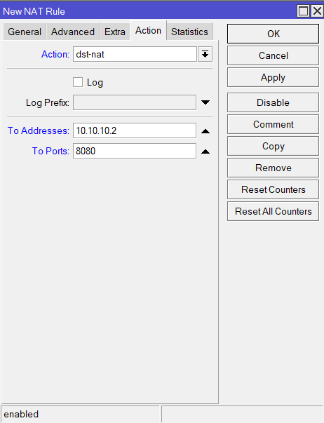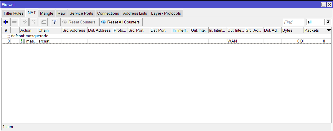 - Przejdź do zakładki NAT w Firewall (IP -> Firewall -> NAT)