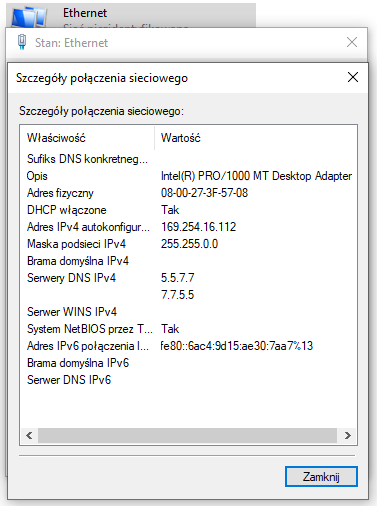- Upewnij się, że karta ma automatyczne pobieranie IP (DHCP)